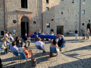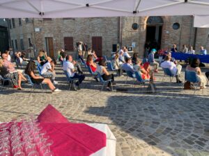 Cartoceto (PU) – In piazza Marcolini a poche ore dalla finale europea di Calcio Italia – Inghilterra, in una calda domenica l’ex Sindaco di Fano Francesco Baldarelli ha presentato il suo secondo libro “La Grande Neve”. Evento culturale organizzato in collaborazione con la Pro Loco di Cartoceto dove si sono evidenziate le grandi opportunità che offre questo piccolo borgo anche nel campo della letteratura. Un libro, La Grande Neve, dove Baldarelli racconta, interpreta, evidenzia molteplici peculiarità di Cartoceto, un paese molto accogliente, pieno di fascino e di storia. A fare gli onori di casa l’assessore al Turismo Debora Conti e il Presidente della Pro Loco Paolo Gilebbi che hanno dato il benvenuto al pubblico intervenuto. La presentazione è avvenuta alla presenza dello scrittore Marco Ferri, del giornalista tedesco Karl Hoffmann e del critico d’arte Franco Mancinelli con la giornalista di Radio Fano Anna Rita Ioni a fare da moderatrice.