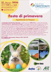Fano (PU) – La Cooperativa Sociale Nuovi Orizzonti in collaborazione con Anffas Fano, vi invitano alla tradizionale “Festa di Primavera- Aspettando la Pasqua” un pomeriggio speciale per tutta la famiglia presso il Garden 381 e il Centro Itaca con giochi, divertimento e laboratori per andare insieme alla #ricercadellaprimavera. Un momento unico per immergersi nei colori e nei profumi che ci circondano con attività creative e tante novità, come il nuovo food truck L’Approdo, con cui Anffas rilancia la sua missione: aprire sempre più il Centro Itaca alle famiglie, alle scuole e alla città, rafforzando il legame tra persone con disabilità e comunità. Un progetto che non si ferma ai confini del centro, ma che guarda all’intero territorio, facendo della condivisione la sua vera forza. Un pomeriggio all’insegna dell’inclusione e della solidarietà, nella meravigliosa e suggestiva cornice del vivaio Garden381 e Centro Itaca.