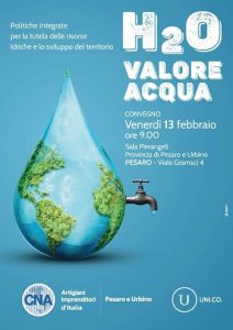 Se ne parlerà nel corso del convegno organizzato dalla CNA di Pesaro e Urbino sulle politiche integrate per la tutela delle risorse idriche e lo sviluppo del territorio dal titolo “H2O Valore Acqua”, in programma venerdì 13 febbraio (ore 9.00), nella Sala Pierangeli della Provincia di Pesaro e Urbino.