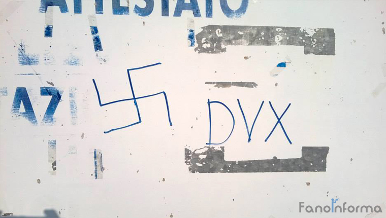 Sul muro esterno e’ stata disegnata una svastica.