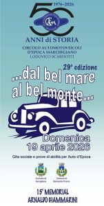 Montecassiano (MC) – Si avvicina la ripresa degli aventi del CAEM/Lodovico Scarfiotti, con la 29^ edizione di “…dal bel mare al bel monte…”, appuntamento nel territorio fermano a carattere agonistico e culturale. La manifestazione cade quest’anno in concomitanza con il 50° Anniversario di fondazione del Club (festeggiamenti previsti dal 31 luglio al 2 agosto) e vedrà la concentrazione degli equipaggi partecipanti presso il kartodromo “Dino Ferrari” di Fermo. Dalle ore 8:30 alle 10:30 si procederà prima alle iscrizioni degli equipaggi e successivamente allo svolgimento delle prove di abilità, per un totale di 26 tratti cronometrati.