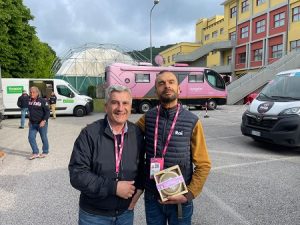 Il Direttore Commerciale di Tre Valli Coperlat Paolo Cesaretti con Fabio genovesi giornalista rai commentatore del giro su rai 2