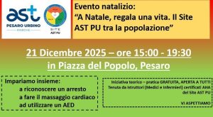Pesaro – L’AST Pesaro-Urbino, attraverso il suo Centro di Formazione “Site AST PU”, il prossimo 21 dicembre, promuove un importante evento natalizio volto alla diffusione delle manovre salvavita nella popolazione generale. L’iniziativa, a ingresso libero e gratuito, punta a sensibilizzare la cittadinanza sull’importanza della rianimazione cardiopolmonare.