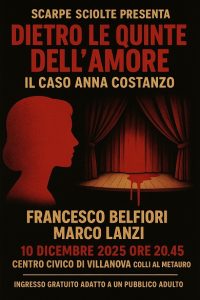 Colli al Metauro (PU) – Terzo e ultimo appuntamento con il ciclo true crime organizzato dall’Associazione Scarpe Sciolte. Mercoledì 10 dicembre, alle ore 20.45, al Centro Civico di Villanova di Colli al Metauro (ingresso libero, riservato agli adulti), l’autore di gialli Francesco Belfiori e l’ex commissario della Polizia Scientifica Marco Lanzi porteranno in scena “Dietro le quinte dell’amore”, ripercorrendo la vicenda e l’indagine sull’omicidio della truccatrice del teatro Petruzzelli, Anna Costanzo. Un caso particolarmente cruento che, tra finzione e messinscena — proprio come su un palcoscenico — rimase al centro dell’attenzione mediatica per mesi. L’omicidio, avvenuto a Bari nell’estate del 2009, si consumò nell’abitazione della Costanzo, trovata senza vita nella vasca da bagno dopo aver pubblicato un enigmatico messaggio sulla propria bacheca social, un indizio che celava un autentico mistero.