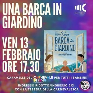 Una barca in giardino è stato presentato in anteprima al Festival di Cannes 2024 e al Festival del cinema d’animazione di Annecy 2024, riscuotendo numerosi apprezzamenti. Come per ogni spettacolo di questo ciclo, il biglietto di ingresso sarà in vendita con posto unico a soli 6 euro, ma tutti coloro che possiedono la tessera della Carnevalesca potranno usufruire dell’ingresso a prezzo ridotto o con la formula speciale 2×1.