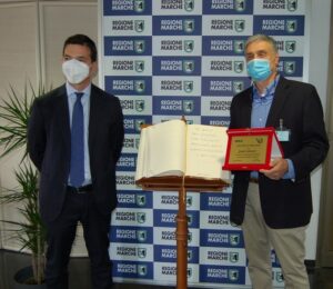 Aveva promesso che sarebbe venuto a ritiralo personalmente: lo ha fatto oggi, nell’ambito di una settimana in cui rimarrà in “Italia per motivi personali”. Nato a Perugia nel 1962, cresciuto a Senigallia, Silvestri si è laureato in medicina all’Università di Ancona, per poi trasferirsi negli Stati Uniti nel 1993. “Sono in America da 30 anni. La scienza, la ricerca e la medicina sono i miei punti di riferimento e le mie passioni. Non sono fuggito dalla mia terra, ma ho semplicemente fatto una scelta personale. Il mondo è grande”. Il governatore Francesco Acquaroli, accompagnato dal consigliere regionale Carlo Ciccioli (presidente della commissione speciale Picchio d’oro), ha, a sua volta, ringraziato Silvestri, per la presenza, che” testimonia attaccamento alle Marche. La stupenda cornice di Loreto avrebbe valorizzato il riconoscimento, ma spero che avremo altre occasioni, appena sarà possibile riprendere una nuova normalità, di rivederci e di celebrare i suoi successi che ci rendono veramente orgogliosi.