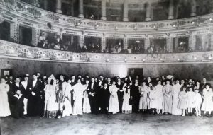 Interessante notare che di solito alle feste partecipava anche “l’elemento popolare” (probabilmente la piccola borghesia), visto che nel 1908 è “quasi assente”, “senza del quale un veglione in teatro in una città come la nostra non può riuscir bene!”. Le gradi cene si fanno anche tra le due guerre mondiali: “laute e copiose le cene con relative… libazioni a smaltire le quali si è ballato fino al mattino verso le sette”; cene consumate anche “nel mezzo della sala”, “nell’atrio del Teatro”, con “addobbo floreale in ogni ordine di palchi” e a partire dalla mezzanotte.