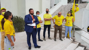 Con queste parole il vicepresidente e assessore all’Agricoltura e alla Caccia Mirco Carloni è intervenuto questa mattina al flash mob di Coldiretti Marche #stopcinghiali che si è svolto di fronte a Palazzo Raffello ad Ancona.