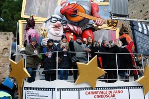 Nel pomeriggio ha preso ufficialmente il via il Carnevale con la prima sfilata dei carri allegorici e con la presenza del coordinatore artistico Dante Ferretti, che ha voluto legare il proprio nome a una delle manifestazioni popolari più antiche d’Europa, in un’edizione fortemente ispirata al cinema. Un dialogo tra settima arte e tradizione che ha trovato un’eco particolarmente suggestiva nei giorni in cui la città di Fano è stata al centro dell’attenzione nazionale per il recente ritrovamento dei resti della Basilica progettata da Vitruvio, a pochi passi dal percorso del Carnevale: un incontro ideale tra l’architettura antica e la scenografia contemporanea, tra l’arte di costruire spazi e quella di immaginarli.