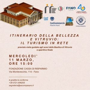 C’è un prima e un dopo quella che da molti è considerata la scoperta del secolo e quel dopo va programmato insieme. In tal senso rientra la giornata dal titolo “Itinerario della Bellezza e Vitruvio: il turismo in rete”, in programma mercoledì 11 marzo, promossa da Alberghi Consorziati con Confcommercio Marche Nord, insieme al Comune, Fondazione Carifano e Federalberghi. Un momento di confronto con illustri ospiti, durante il quale si parlerà di programmazione, promozione, accoglienza, valorizzazione archeologica, dell’importanza di fare sistema, del progetto turistico di Confcommercio “Itinerario della Bellezza” che mette in rete oltre 30 Comuni delle Marche, affinché il sensazionale ritrovamento porti a una trasformazione profonda del valore dell’offerta e quindi a un impatto economico tangibile.