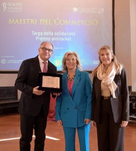 “Sono particolarmente orgogliosa di festeggiare i Maestri del commercio – ha esordito la presidente di 50&Più Patrizia Caimi, al tavolo con il direttore di Confcommercio Agnese Trufelli, la vicepresidente di Confcommercio Patrizia Di Dio, De Lucia e Violante – e fiera di assegnare il Premio Antiracket, ideato dal mio predecessore Giuseppe Ciucciarelli, giunto alla sua 20esima edizione. Esprime la nostra solidarietà a chi ha speso la propria esistenza per difendere il nostro diritto a lavorare in un Paese libero dal cappio della criminalità”.