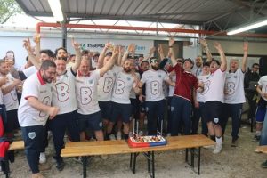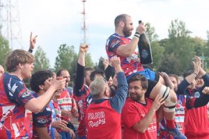 Fano (PU) – Il secondo tentativo è stato quello buono per festeggiare la storica promozione in B per la Essepigi Techfem Fano Rugby, che con la sconfitta col minimo scarto nello scontro diretto di Pesaro aveva comunque posto una pesantissima ipoteca sul salto di categoria. Il capolavoro della squadra fanese è stato completato con la perentoria affermazione sul Rugby Falconara Dinamis, la quindicesima in sedici incontri stagionali, regolato col punteggio di 61-0 sul terreno amico di Tombaccia. I ragazzi del presidente Giorgio Brunacci avevano bisogno di una vittoria con almeno quattro mete segnate per incamerare anche il punto bonus offensivo, così da poter diventare irraggiungibili dai cugini pesaresi nel prossimo ed ultimo turno, pratica sostanzialmente già sbrigata contro i falconaresi prima di guadagnare gli spogliatoi per l’intervallo sul 34-0. Alla fine, è scattata la grande festa per la squadra capitanata da Nicola Bargnesi, stretta da un caloroso abbraccio dal resto della eterogenea e numerosa famiglia rossoblù e dai tanti affezionati presenti a bordo campo in attesa del ripristino del rinnovato “Falcone-Borsellino”.