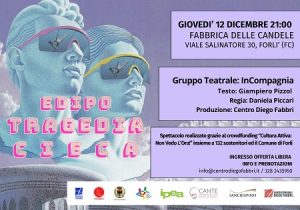 Dalle pagine di “Non Vedo l’Ora!” il Centro Diego Fabbri di Forlì ha infatti pensato di partire per la produzione di “Edipo: Tragedia Cieca”, un’idea geniale dell’industrioso Paolo De Lorenzi interpretata con successo dal neonato gruppo teatrale InCompagnia con testo di Giampiero Pizzol e regia di Daniela Piccari. La folta platea della sala teatrale forlivese “Fabbrica delle Candele” non ha nascosto il proprio apprezzamento per la “prima” di questa rivisitazione del mito di Edipo, che ha suscitato risate alternate a profonde riflessioni su temi universali come il destino, la cecità e il nuovo rapporto con il tempo e lo spazio che la perdita della vista genera nella vita di tutti i giorni.