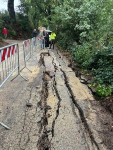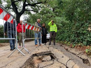 Pesaro – Maltempo, cede una parte di strada dell’Angelo Custode, il sindaco Andrea Biancani, di rientro dal sopralluogo fatto insieme all’assessora Mila Della Dora e al presidente del Consiglio comunale con delega alla Protezione civile Enzo Belloni, parla di «danni ingenti. Ci vorranno almeno 200mila euro per ripristinarla. Al momento abbiamo previsto un senso unico alternato. Speriamo che la situazione non peggiori e non ci porti a chiudere totalmente la strada».