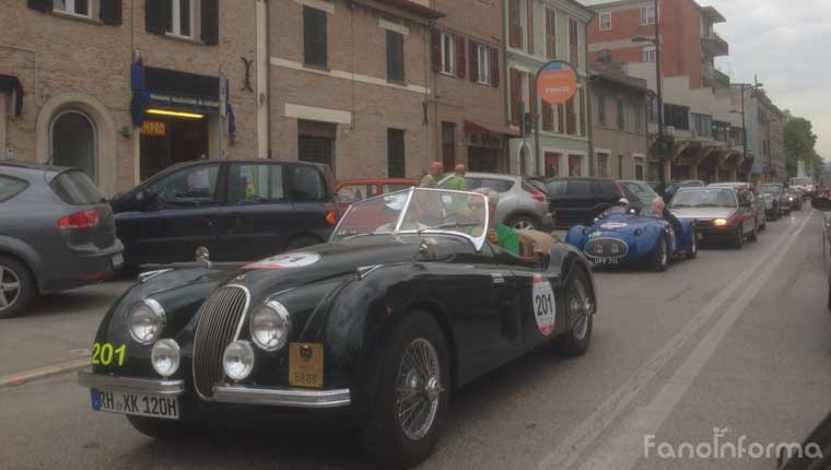 Fano (PU) – Fascino senza tempo per la Mille Miglia che questa mattina, intorno alle 11.45 ha attraversato la città. La tappa di oggi prevede un percorso che da San Marino porterà la carovana ad attraversare Pesaro, Senigallia e Ancona per poi proseguire verso sud, sulla costa, fino a Loreto, Recanati e Macerata e, di seguito, Ascoli e Teramo.