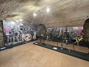 Pesaro – Inaugurato un anno fa, il Museo della Bicicletta di Pesaro, luogo della cultura cittadina, racconta – attraverso un percorso emozionante e piacevole per un pubblico di tutte le età – la storia gloriosa del mezzo di trasporto sostenibile per eccellenza. Nei sotterranei di Palazzo Gradari è possibile ammirare 40 bici da corsa in un excursus cronologico dal 1930 fino ad oggi, fra cui magnifici pezzi storici in ferro e acciaio come quelli utilizzati dai pionieri del ciclismo di inizio novecento: su tutti il primo “Campionissimo” Costante Girardengo. E poi ancora alcuni esemplari coevi a Coppi e Bartali degli anni Cinquanta insieme con altri degli anni Sessanta e Settanta quando campioni quali Baldini, Adorni, Motta, Gimondi, Merckx e il pesarese Enrico Paolini (tre volte campione d’Italia) infiammavano le folle con le loro gesta. Esposta anche la bicicletta originale del record dell’ora del 1988 di Francesco Moser appartenente alla collezione Italian Legend Bicycles.