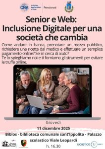 Un Silver day che si terrà Giovedì 11 dicembre con inizio alle ore 16.30 nella Biblioteca comunale di Sant’Ippolito nel Palazzo scolastico di viale Leopardi.