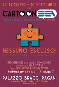 Fano (PU) – Torna a Fano il Cartoon Sea! Dopo lo stop forzato di due anni si svolgerà ad agosto il premio nazionale di umorismo e satira giunto alla XII edizione dal titolo “NESSUNO ESCLUSO!”. … non c’è niente da ridere!… era il sottotitolo nelle prime edizioni del Concorso e oggi più che mai i temi delle disuguaglianze, esclusioni, diritti negati, discriminazione di genere, ghettizzazione non sortiscono emozioni di leggerezza e ilarità, pertanto lo sguardo arguto e pungente dei vignettisti è da considerare uno strumento urgente di sensibilizzazione e di riflessione.