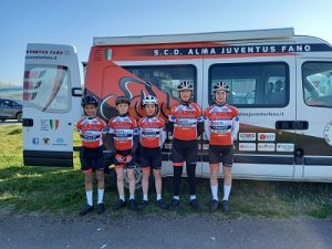 Fano (PU) – Il lungo fine settimana di Pasqua e Pasquetta ha visto le formazioni della SCD Alma Juventus Fano impegnate su più fronti tra Romagna e Marche, con un doppio appuntamento durissimo per gli Allievi ed il debutto stagionale per i Giovanissimi. I più grandi, ovvero gli Allievi, hanno dapprima partecipato alla vigilia di Pasqua al 6° Trofeo Bellaria Igea Marina (RN) e 5° Memorial Stelio Neri, dove su 145 partenti solo la metà ha concluso la prova. In una corsa sviluppatasi a velocità alquanto sostenuta sin dai primi giri e vinta da Carlo Ceccarello della Ciclistica Monselice (PD), Simone Ringhini si è dimostrato l’elemento per il momento più solido della squadra arancio-aragosta dei DS Filippo Beltrami e Gabriele Gorini chiudendo con un ottimo 23° posto.