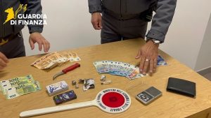Pesaro – I finanzieri del Comando Provinciale di Pesaro e Urbino, nella serata tra la notte di Halloween e la festività di Ognissanti, hanno intensificato, nell’ambito dei costanti servizi volti alla prevenzione ed al contrasto dei traffici illeciti sul territorio, gli interventi mirati al contrasto dello spaccio di sostanze stupefacenti. Nel corso dell’attività di osservazione della zona di Montecchio di Vallefoglia, l’attenzione delle Fiamme Gialle del Gruppo di Pesaro è stata attirata da due soggetti (un diciottenne italiano e un ventiquattrenne di nazionalità macedone, entrambi residenti nel Comune di Vallefoglia) che alla vista dei militari hanno manifestato da subito segni di nervosismo.
