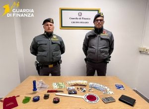 Gli immediati controlli effettuati sulle persone fermate hanno permesso di rivenire, occultati nelle tasche dei pantaloni e negli indumenti intimi, alcuni panetti contenenti complessivamente 200 grammi di hashish, che se immessi sul mercato avrebbero fruttato circa 1.800 Euro. Le conseguenti perquisizioni domiciliari eseguite, avvalendosi dell’ausili delle unità cinofile “Ebro” e “Alex”, presso le abitazioni di residenza dei citati soggetti hanno consentito di rivenire 2.000 Euro in contanti, un coltellino, una sigillatrice e sacchetti di plastica per il confezionamento della sostanza. All’esito delle operazioni di polizia si è proceduto al sequestro dello stupefacente, del denaro contante (ritenuto profitto dell’attività di spaccio), delle attrezzature rinvenute e a segnalare i due responsabili, per il reato di detenzione ai fini di spaccio di sostanze stupefacenti di cui all’art. 73, commi 4 e 5 del D.P.R. n. 309/90, alla Procura della Repubblica di Pesaro, che ne ha disposto l’arresto.